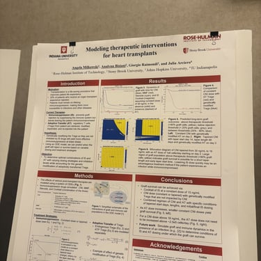 This summer I had the privledge of working at Indiana University Indianapolis apart of an Undergraduate Research Experience along with eight other undergraduates across the country. During my summer I worked on a project focusing on the mathematical modeling of therapeutic interventions for heart transplants. Through this experience I was able to work with different collaborators and combine mathematical and scientific efforts to work to improve treatments post operation. I am very thankful to my advisor Dr. Julia Arciero and the Department of Mathematical Sciences at IU Indianapolis for hosting me this summer.